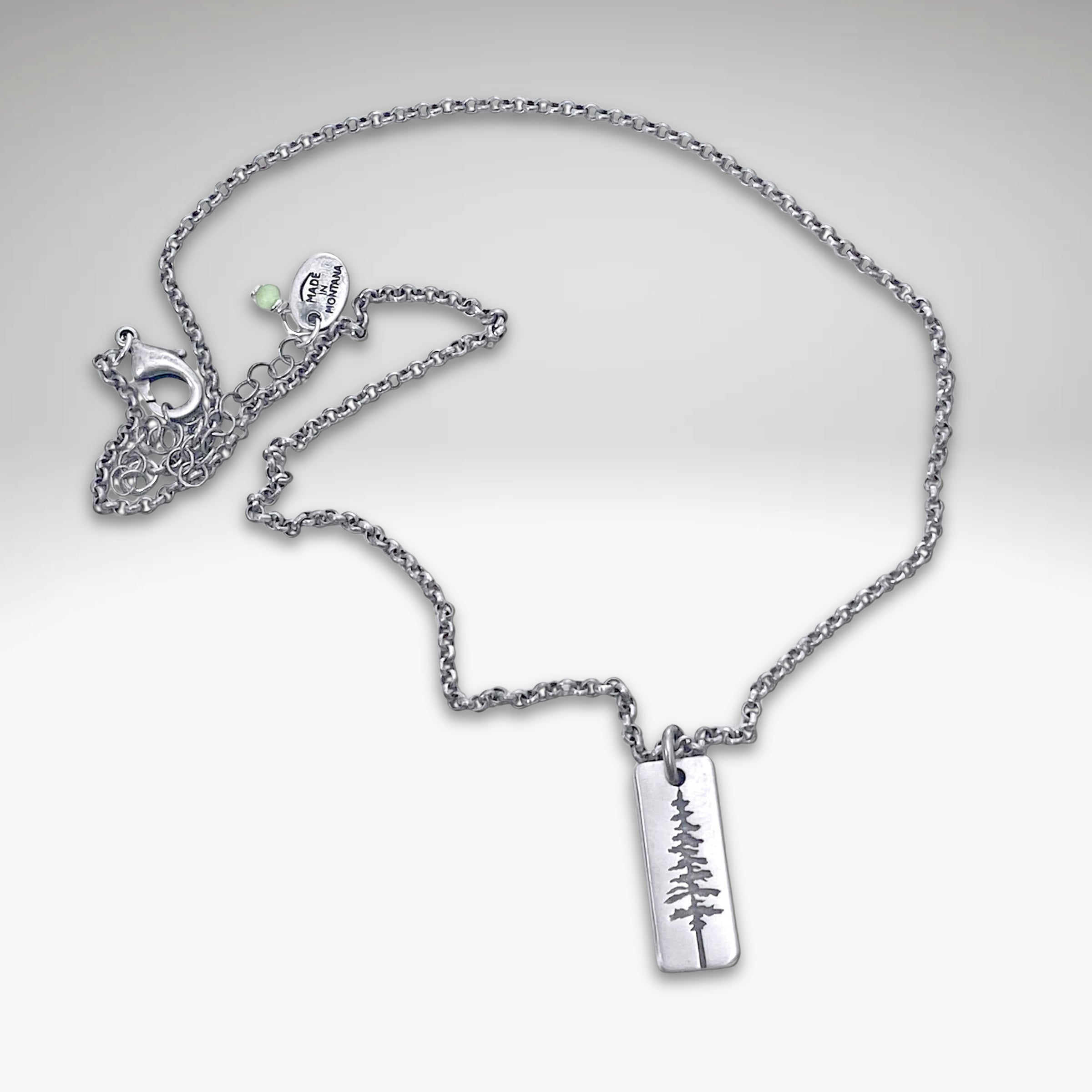 The Ponderosa Pine Tree provides the inspiration for this elegant yet simple necklace. An ideal present for any nature enthusiast or outdoor enthusiast, the PPine pendant is available on beaded or cable chain adjustable up to 18", or on a monofilament cord adjustable to 30".