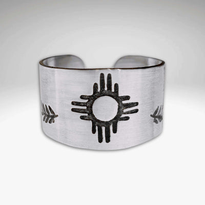 Absorb the warmth of the sun with these Sol Hoop Earrings. We craft these with raw brass and etch the Zia sun design with our unique acid-free process. The Zia is on the state flag of New Mexico. The hoop-style earwires measure 1.0" in diameter and are either sterling silver for the matte silver finish or 14k gold filled for the antique brass finish, offering a super safe wear. A beautiful gift for any sun-lover. This style is offered in two finishes: Matte Silver and Antique Brass. Click here to learn more about our process. Let us know if you prefer a regular earlier.